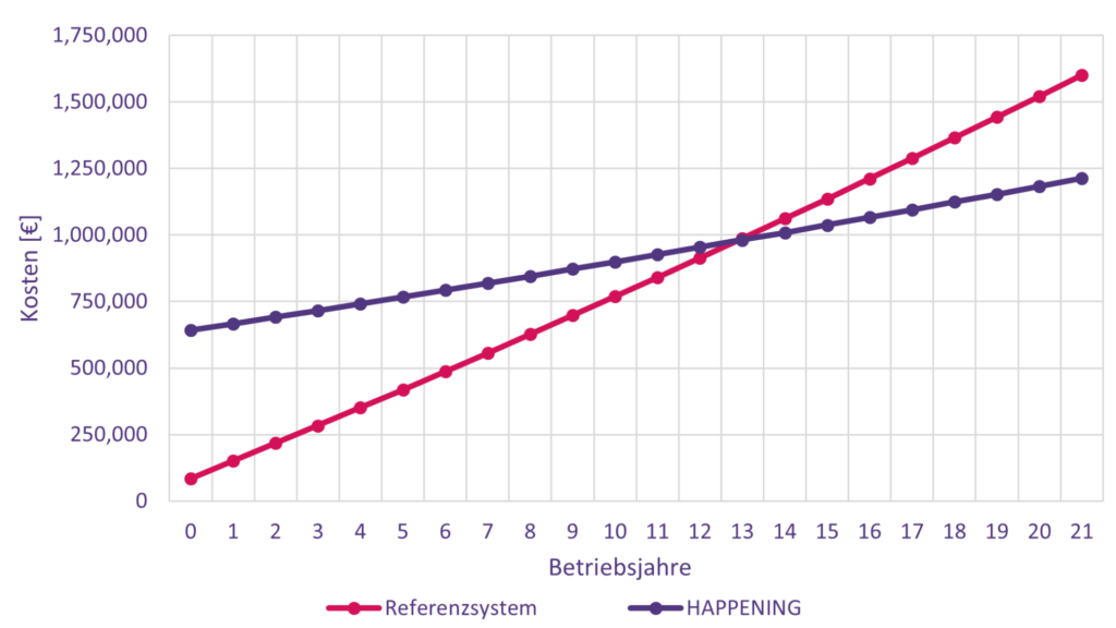 Trotz höherer Anfangsinvestitionen zeigt die Wirtschaftlichkeitsanalyse, dass sich das System durch niedrige Betriebskosten bereits nach 13 Jahren amortisiert. Es beweist, dass nachhaltige Technologien nicht nur umweltfreundlich, sondern langfristig auch wirtschaftlich vorteilhaft sind.